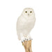 Snow owl on driftwood mount. Life size and realistic however made of white Imden farm goose feathers as a recreation. The beak and claws are sculpted from a resin material. 31"H x 18"W x 17"D including base.