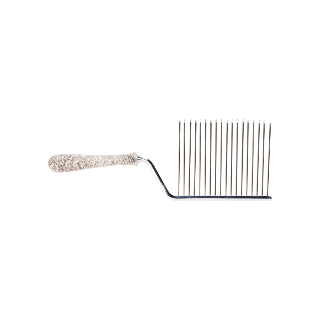 American sterling silver cake server set. Cake cutter and server by S. Kirk & Son in repousse floral pattern.