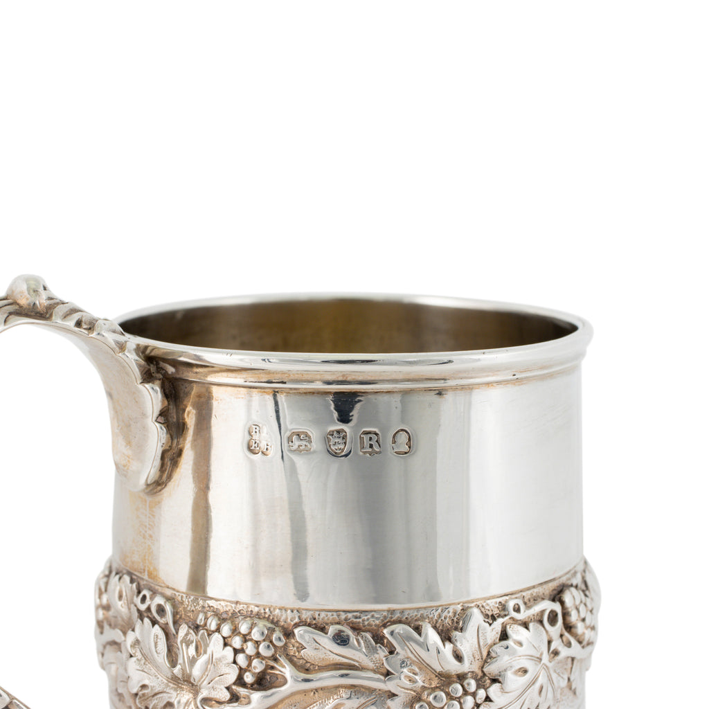 Regency sterling vintner's cup hallmarked London 1812-13 by Rebecca Emes and Edward Bernard. Molded edges, wide "vintage" band acanthus - leaf handle, the interior gilt.