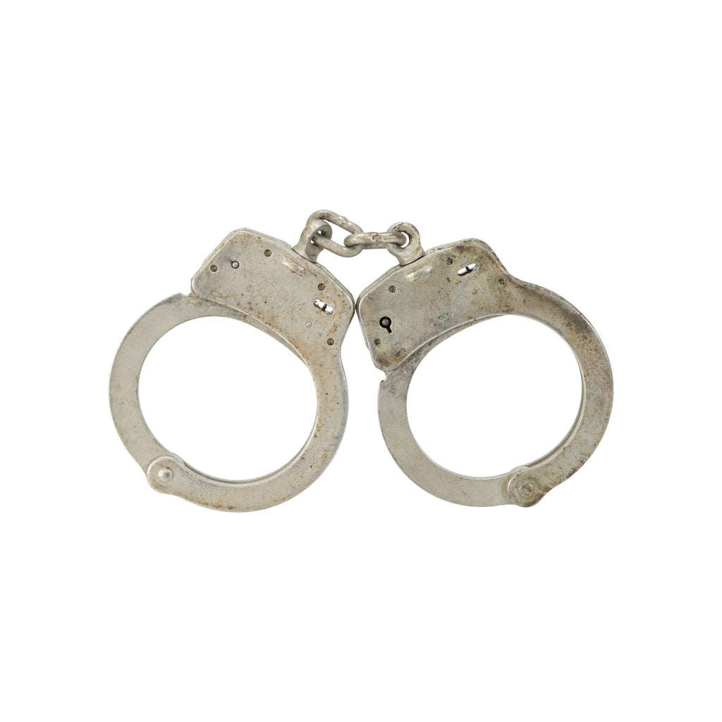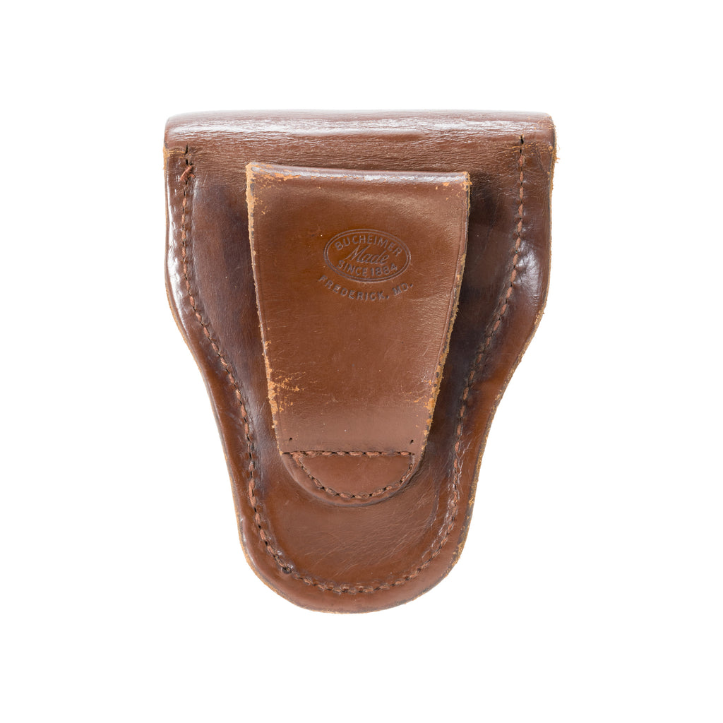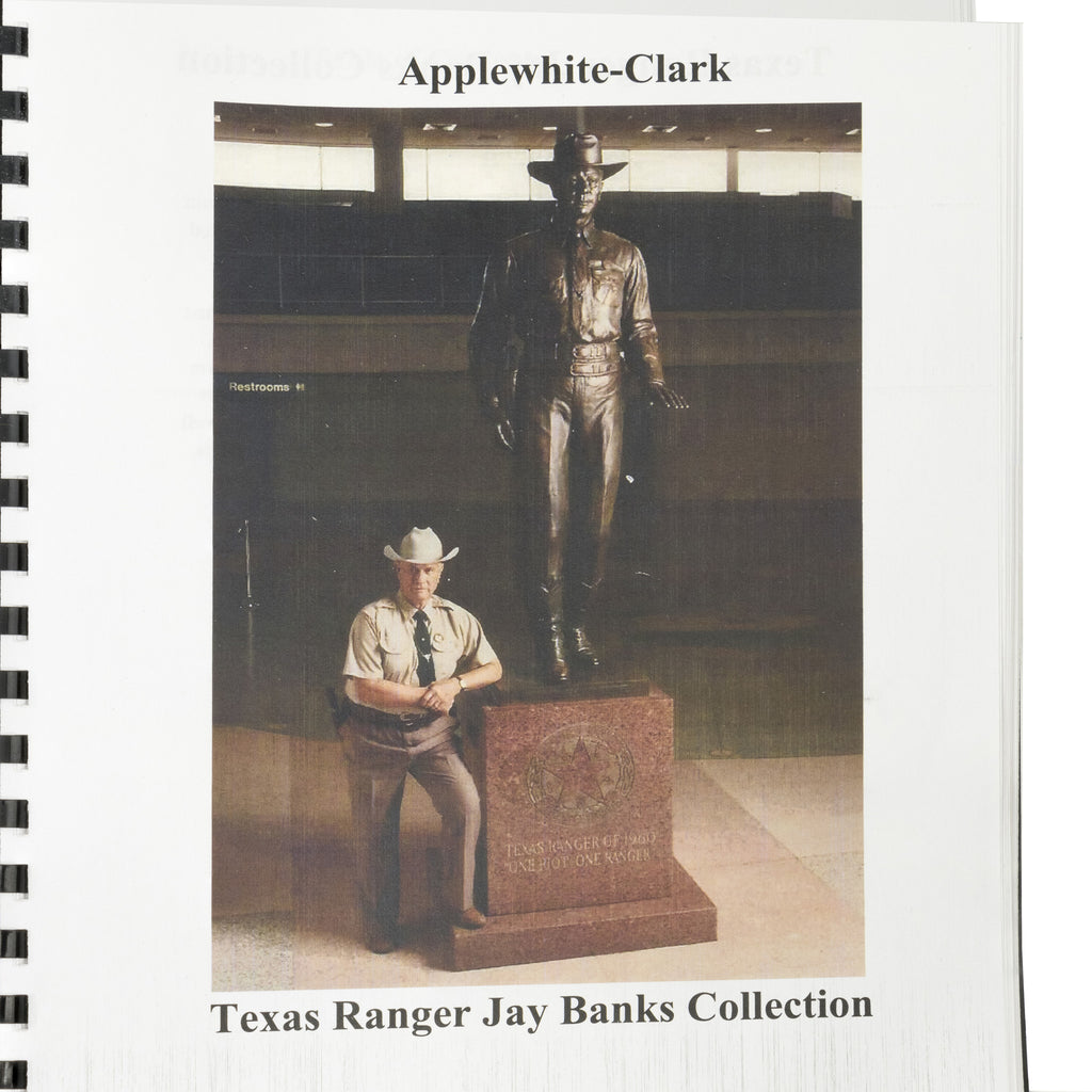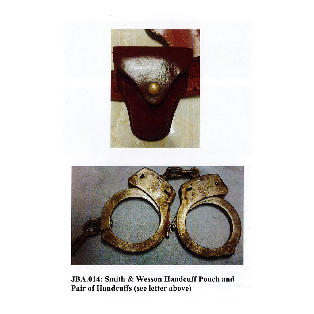 Texas Ranger Jay Banks handcuffs and pouch. Pair of Smith and Wesson handcuffs with key and leather Bucheimer handcuff pouch used by Texas Ranger Jay Banks. The snap is missing on the pouch. Ex. Jay Banks Applewhite-Clark Collection. Comes with the Jay Banks Collection booklet. After serving as a Constable in Jack County since 1936, Jay fulfilled his lifelong dream of becoming a Texas Ranger in 1947 where he transferred to Dallas and spent the rest of his career eventually progressing to Field Ranger, then Sergeant and finally to Captain of Company B.