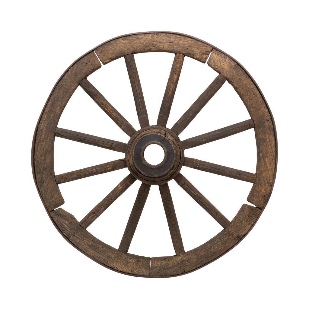 Texas wagon wheel. Wooden construction with metal hub and rims. 33"D Two available.