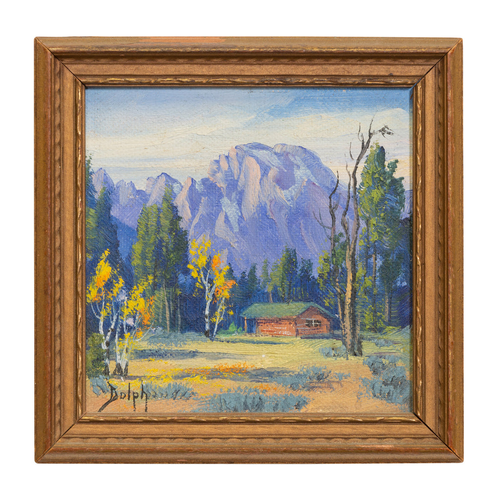 Oil on board; 3 1/4" x 3 1/4". Dorothy and her husband homesteaded in Wyoming in 1913. In 1925, she painted an historical painting of Casper as it appeared in 1912, which was purchased by the governor of Wyoming. As the Great Depression began, Dorothy started painting anything that would sell: mountain landscapes, cabins, ranch buildings, horses, cattle, sheep and sheep wagons. She was able to earn cash for her paintings, but she also frequently traded for tires, gas, and groceries. Her first big commission came when Mr. F. J. Haynes approached her and commissioned paintings for his store in Yellowstone Park. During the next two years, Dorothy painted 1,465 paintings for him to be sold at the Park’s concession stores. In the early 1930s, she took to the road in search of fresh subject matter, traveling and camping around the country and covering most of the lower 48 states, Alaska, and much of Canada. Dorothy spent her final years in Post Falls, Idaho, where she could be closer to her sons, but continued to enjoy an active lifestyle until her death in 1979 at the age of 94.