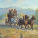(1925-2006 ) Oil on panel; 18" x 24" framed 25" x 31". Signed bottom left. Depicting a stagecoach pursued by a war band. Ron Crooks is a painter of nostalgic western genre subjects. He was born and raised in Glendale, California and in 1972 moved to French Gulch, California. He enrolled in the OtisArt Institute in March 1944, and "completed only three weeks at Otis, before being drafted into the Army. Two and a half years later he returned home and enrolled again at Otis. After one year, he moved to the School of Allied Arts and left school in 1950 to work in the art department of an aircraft company. In 1968, after fifteen years in advertising art, he took the big step to fine art, painting all subjects, but soon discovering an identity in Western subjects. In 1968, after fifteen years in advertising art, he took the big step to fine art, painting all subjects, but soon discovering an identity in Western subjects. Ex. Deaccessioned from a major corporate collection in Carthage, Missouri.