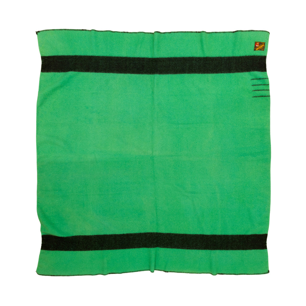 Trapper's Point blanket with four points. A green wool with black. With label. 74" x 69"