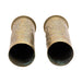 Pair of WWI era trench art vases fashioned from artillery shells. Floral blossoms in low relief. 9"H x 3 1/4"D