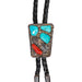 Bolo tie with turquoise and coral nuggets on sterling center with hand stamped leaf design.