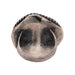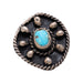 Sterling silver and Kingman turquoise ring in shadow box with twisted rope and sterling bead border. No maker's mark. Heavy patina that can be easily buffed out if preferred.
