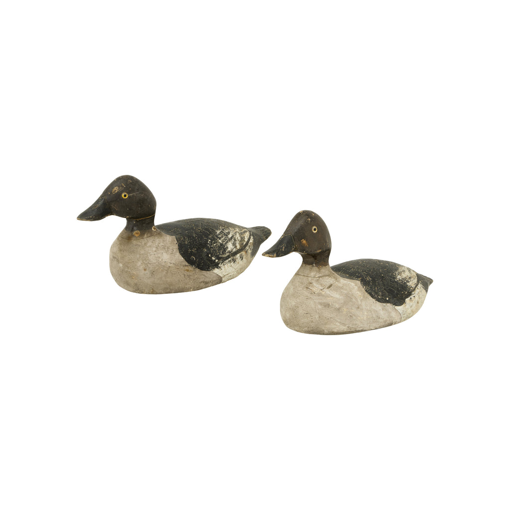 Pair of golden eye hen decoys from Quebec, Canada. Glass eyes, late 19th - early 20th Century. Carver unknown. 13 1/2"