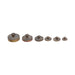 Vintage Miniature Gold Scale Weight Set. Brass label "The Braun Company Los Angeles." 8" x 3" x 1 3/4"L