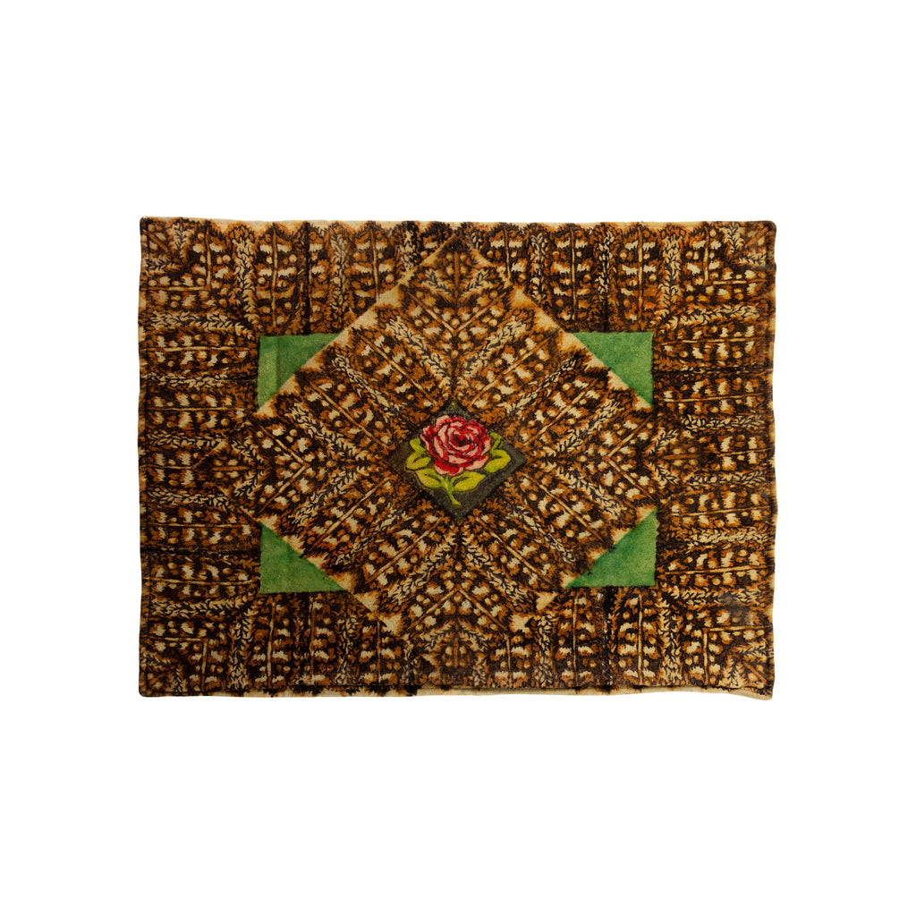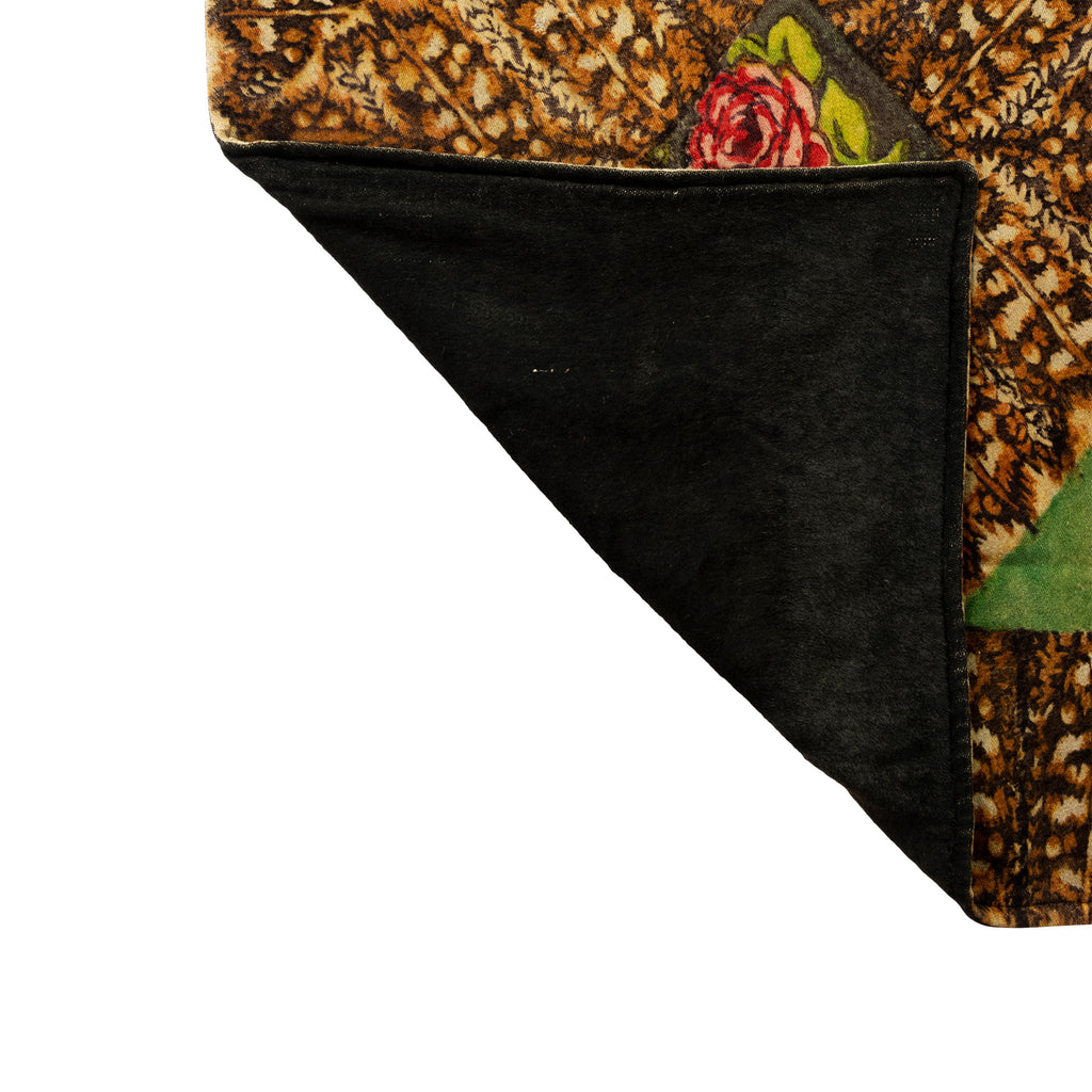 Vintage double-sided wool lap robe. Center red rose panel. Used a throw for couch, bed or in the wagon.