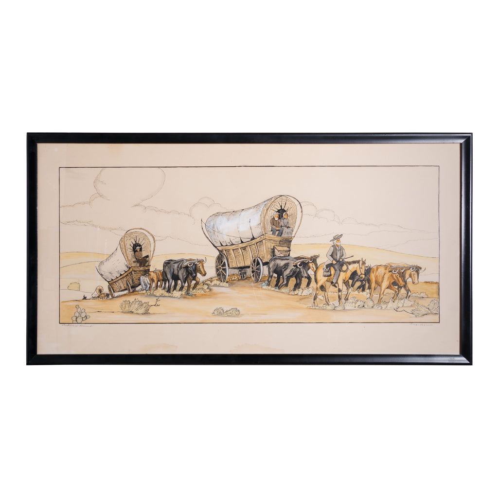Ink and watercolor - 41" x 19". Realistic yet folky. We have not taken off the back. From style and frame estimate 19th century.