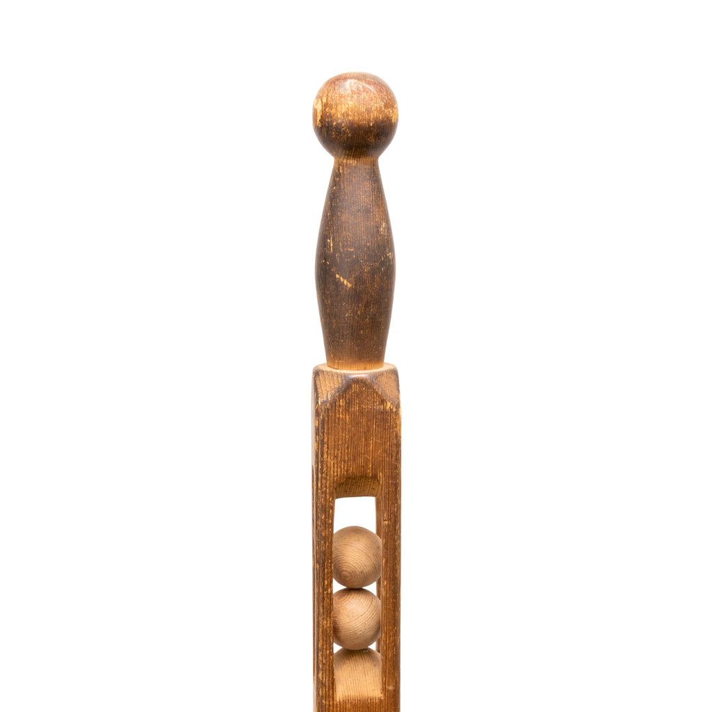 Whimsical ball and cage walking stick carved of fir. Much used patina on handle. Collected on the Lakota Sioux Pineridge Reservation. 41”. Late 19th Century.